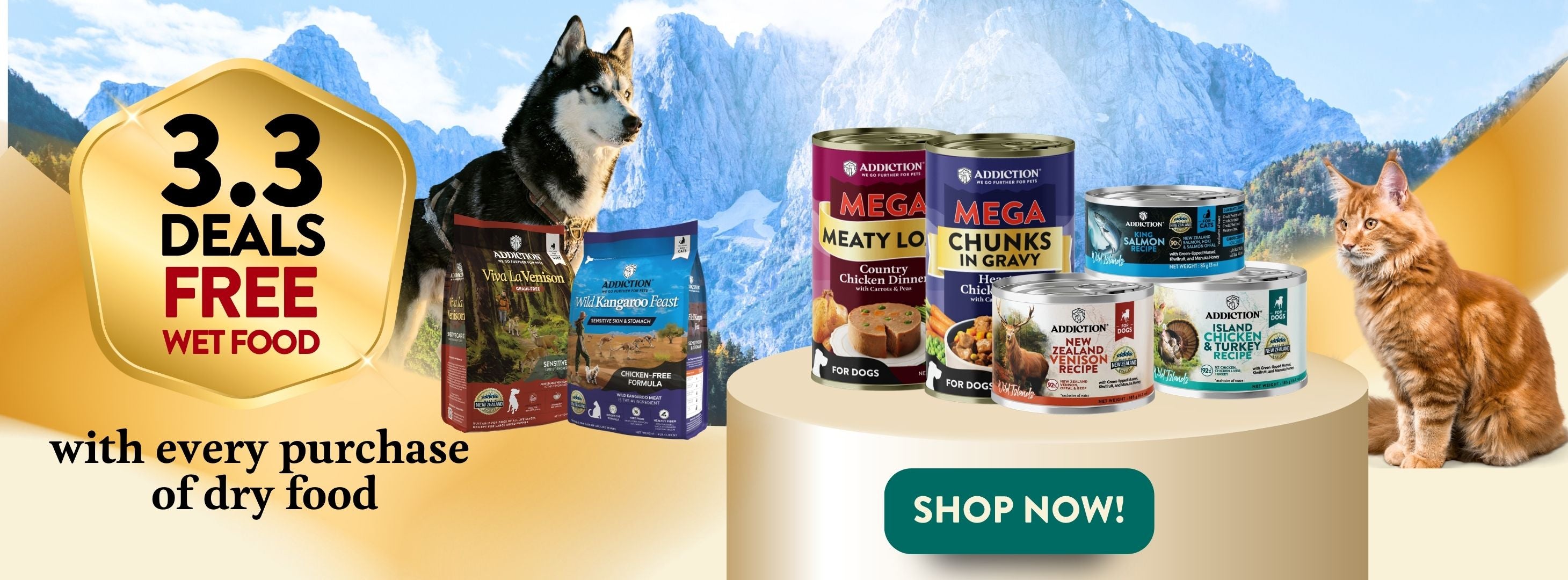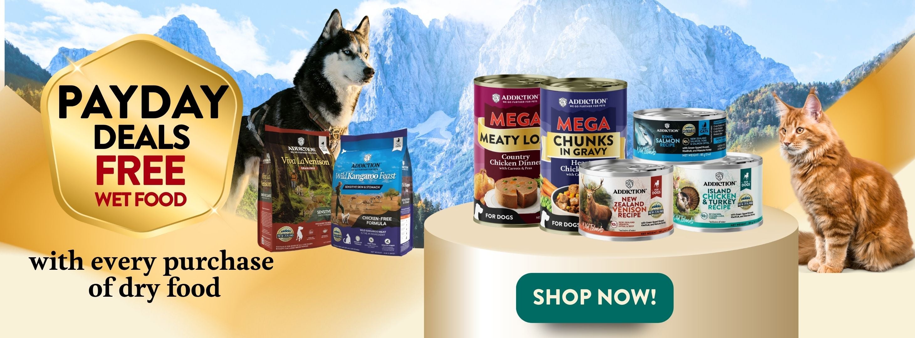• Addiction Outback Kangaroo Feast: A raw-alternative muscle-meat recipe enriched with nutrient-dense superfoods like papayas and blueberries to support digestion and skin health.