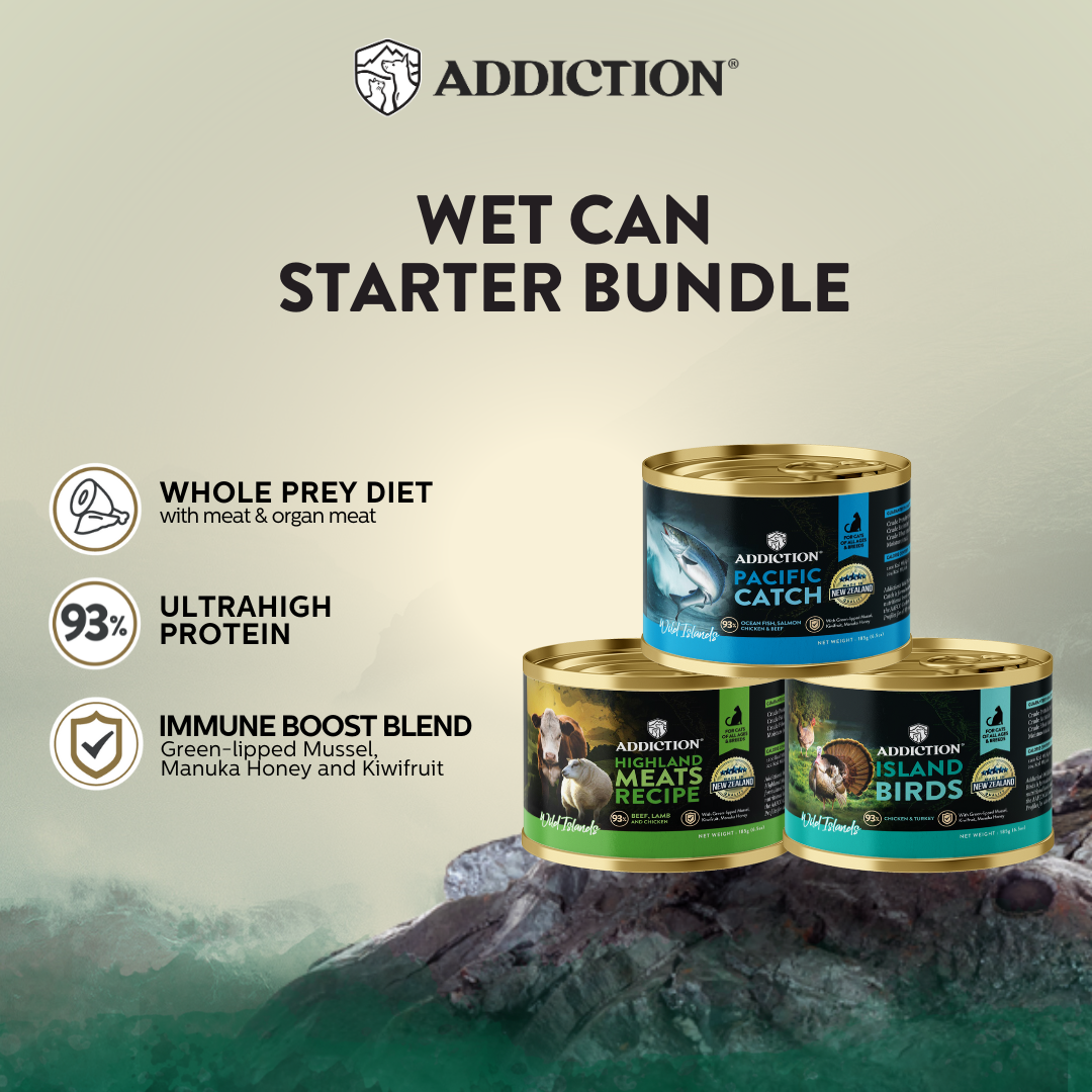 Satisfy your cat’s cravings with the Wild Islands Variety Pack, a gourmet selection of protein-rich recipes inspired by nature. In the wild, cats thrive on a protein-rich, low-carbohydrate diet that mirrors their ancestral nutrition. Every recipe in this variety pack has 93% animal ingredients. It is free from grains, gluten, potato, tapioca, corn, soy, wheat, and carrageenan—giving your cat the natural, meat-first diet they’re meant to enjoy.