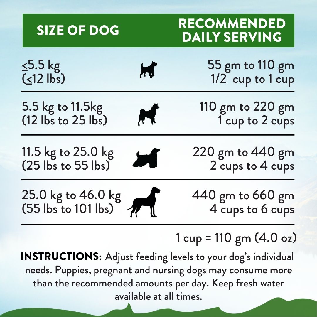 Feed pregnant dogs up to 50% more during the entire pregnancy. For Lactating Dogs, feed twice the amount of food as an adult dog 3 to 4 times a day. For Puppies, feed twice the amount of food as an adult dog 3to 4 times a day. Puppies over 6 months of age should be fed twice a day.