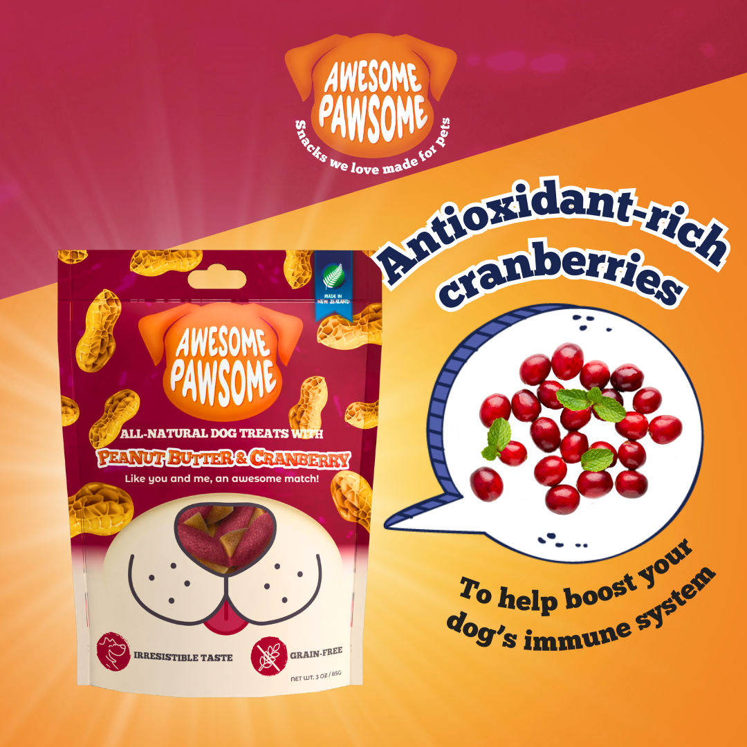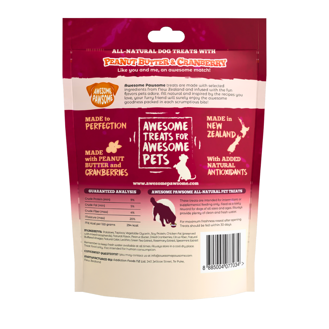 Awesome Pawsome All Natural Dog Treats Peanut Butter and Cranberry Recipe 85g