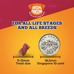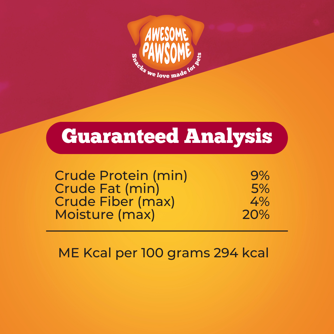 Awesome Pawsome™ all-natural pet treats are intended for intermittent or supplemental feeding only. Feed as a tasty reward for dogs of all sizes and ages. Can be given daily. Always provide plenty of clean and fresh water.For maximum freshness, reseal after opening. Treats should be fed within 30 days.