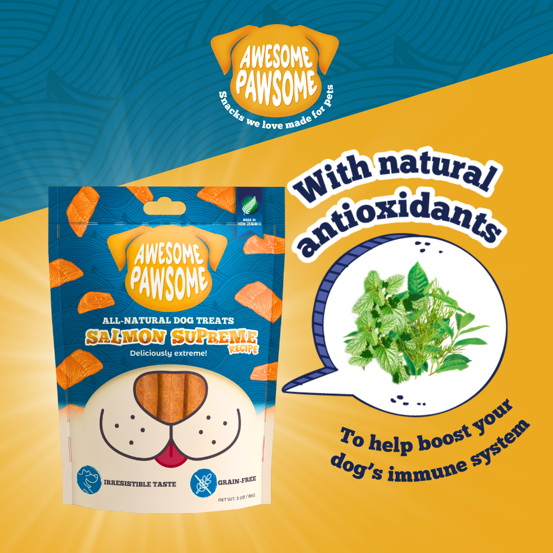 Pamper your dogs with a king’s treat! Awesome Pawsome™ Salmon Supreme is bursting with robust flavors of real New Zealand king salmon along with naturally-occurring antioxidants and Omega-3 fatty acids.