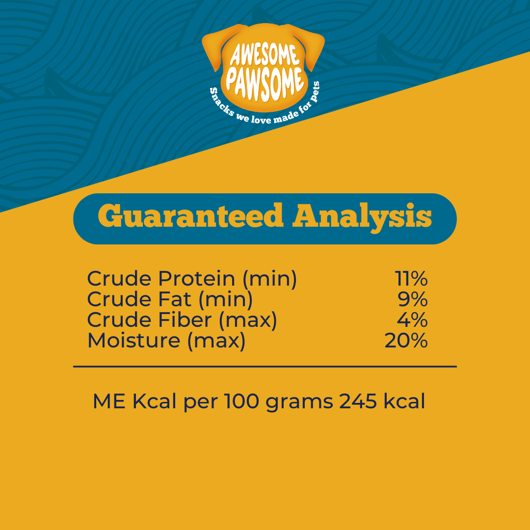 Awesome Pawsome™ all-natural pet treats are intended for intermittent or supplemental feeding only. Feed as a tasty reward for dogs of all sizes and ages. Can be given daily. Always provide plenty of clean and fresh water.For maximum freshness, reseal after opening. Treats should be fed within 30 days.