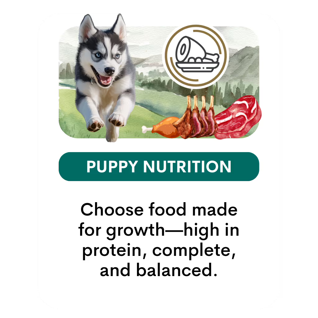 Raising a puppy is a big job—and it starts with what’s in their bowl. Here’s what to look for in food that supports healthy growth from the start: