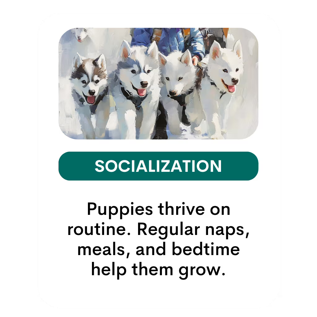 Start slow. A few short walks and play sessions each day are enough at first. Avoid long runs or intense play, especially for large breed puppies whose joints are still developing.