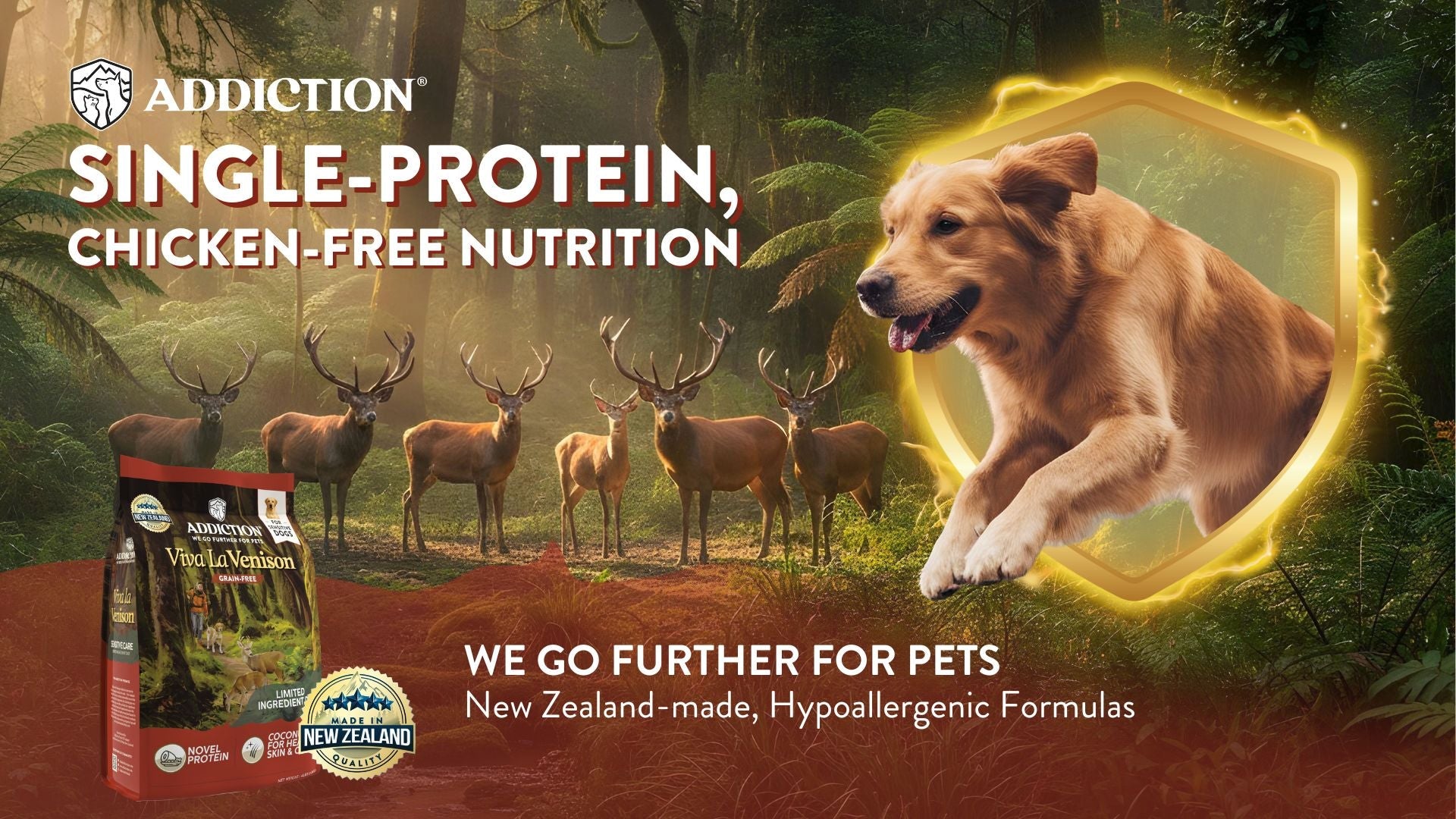 At Addiction, we believe pets deserve food made from real, pure ingredients. That’s why our hypoallergenic recipes use single proteins like kangaroo or venison, which are easier to digest and less likely to cause sensitivities.